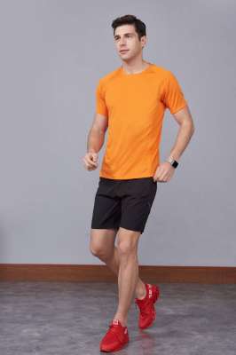 修身運動短袖 舒適透氣跑步訓練速干T恤-橘色