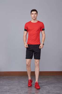 男裝新款情侶裝純色T恤 男上衣潮純棉圓領(lǐng) 短袖T恤 紅色