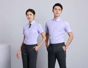 襯衫定制 時(shí)尚襯衫男女士夏季 淺藍(lán)色短袖襯衫